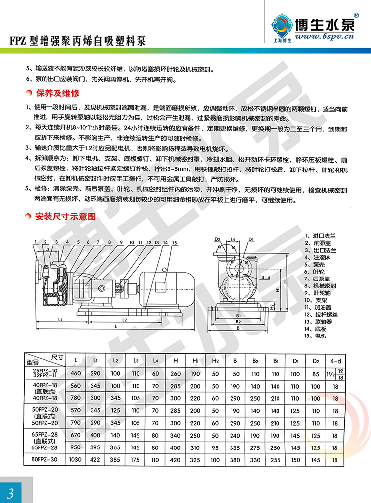 博生牌FPZ型直聯式塑料自吸泵