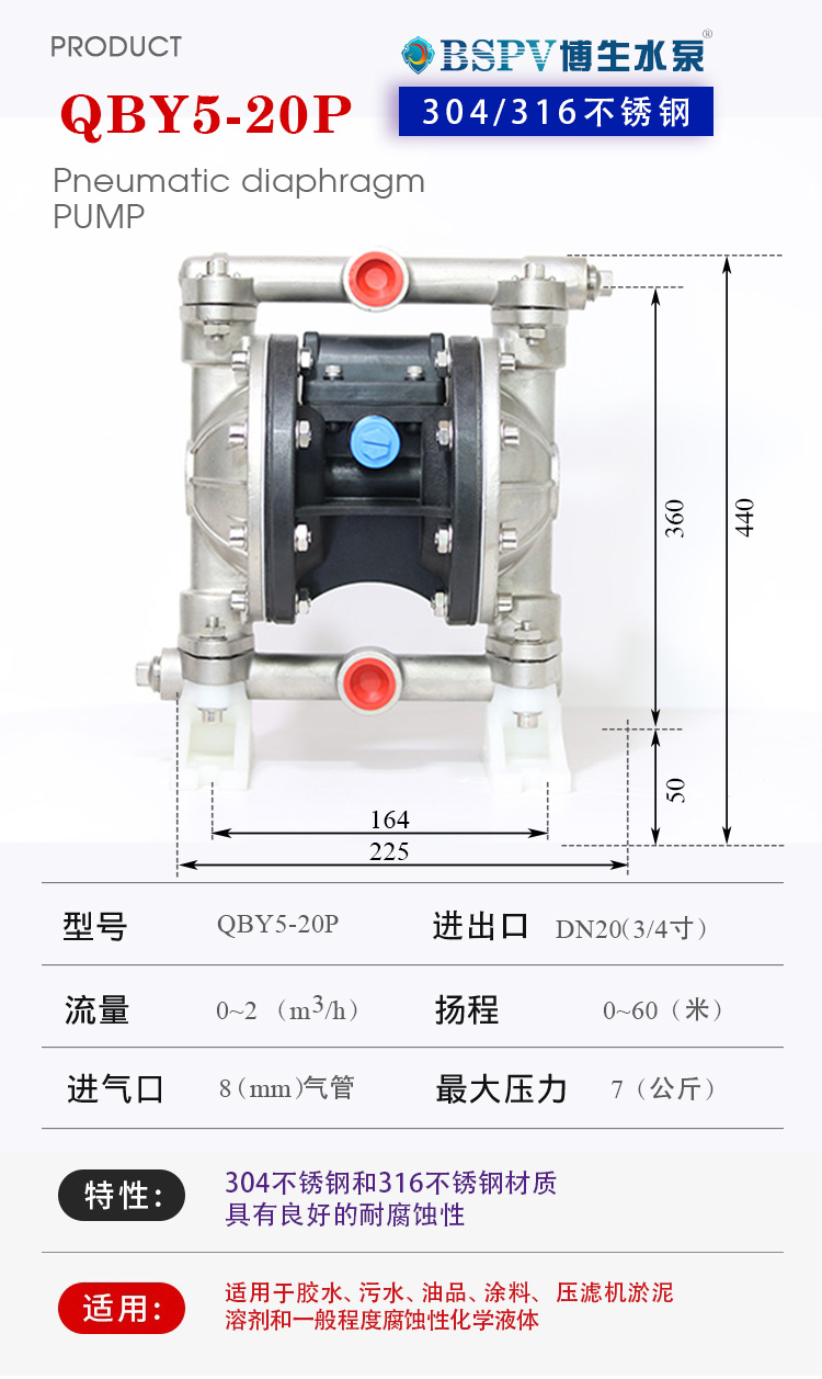 QBY5-20P型不銹鋼氣動(dòng)隔膜泵